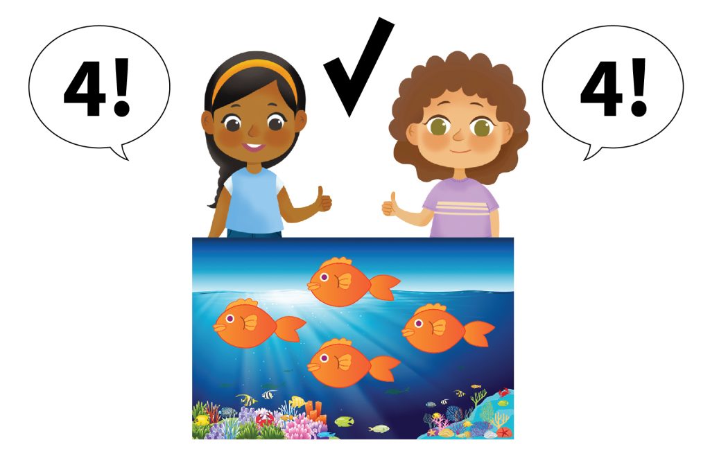 This version of Big Fish Story is suitable for children who are already able to count forward and backward from a number other than one without support, and are beginning to add and subtract small sets of numbers within 5.